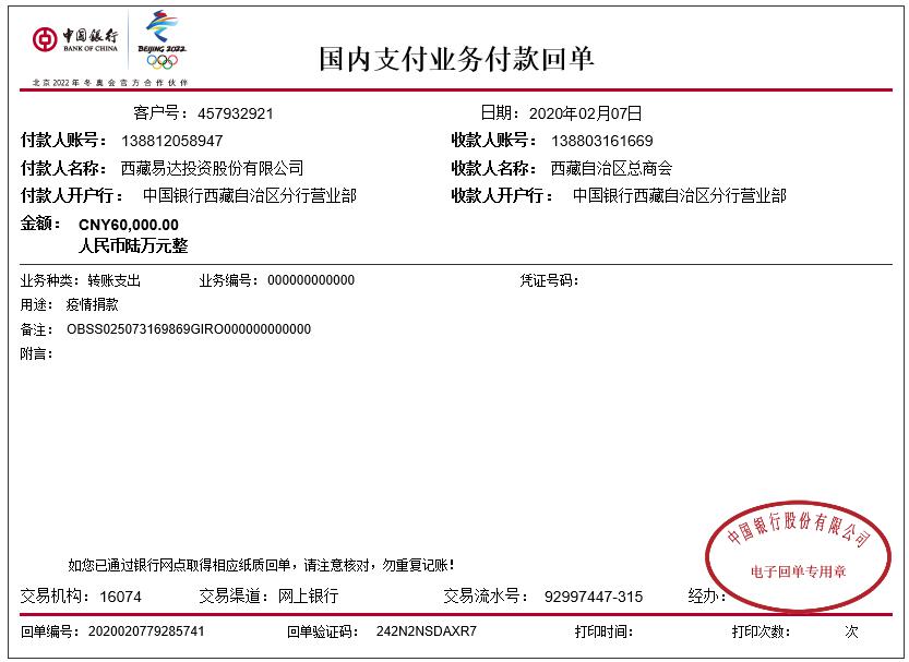 疫情就是命令,防控就是責(zé)任。易達(dá)集團(tuán)黨委帶領(lǐng)集團(tuán),通過“延、查、捐”三方面舉措,嚴(yán)格布置,全面防控。首先,推遲集團(tuán)員工復(fù)工時(shí)間。根據(jù)國(guó)家對(duì)新型冠狀病毒感染肺炎疫情防控工作的要求,為有效減少人員聚集、阻斷疫情傳播,結(jié)合國(guó)家及區(qū)工商聯(lián)的倡議,推遲西藏公司、尼泊爾公司和成都公司員工復(fù)工時(shí)間。其次,深入調(diào)查職工信息,做好職工跟蹤關(guān)懷。根據(jù)疫情防控要求,集團(tuán)黨委對(duì)職工春節(jié)期間出行信息及身體狀況進(jìn)行統(tǒng)計(jì),各支部發(fā)揚(yáng)先進(jìn)作風(fēng),通過在線工作群全面做好疫情防控宣傳,疏導(dǎo)職工情緒,建立信心,積極做好職工關(guān)懷跟蹤。同時(shí)集團(tuán)發(fā)揚(yáng)“一方有難,八方支援”的協(xié)作精神,積極履行社會(huì)責(zé)任,組織全員捐款,為疫情防控工作貢獻(xiàn)全部力量。2020年1月27日,集團(tuán)旗下西藏易境旅游景觀規(guī)劃設(shè)計(jì)公司向湖北省紅十字會(huì)捐贈(zèng)5萬元; 2020年2月7日,西藏易達(dá)投資股份有限公司向西藏自治區(qū)總商會(huì)捐贈(zèng)6萬元;截止目前公司抗擊疫情捐款共計(jì)11萬元。