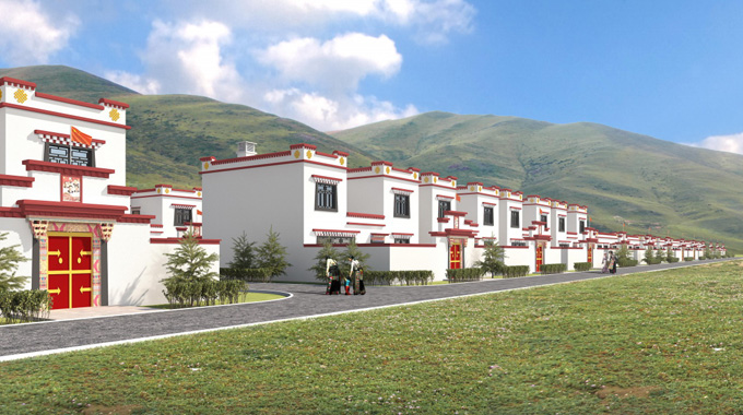 項目在立面整體設(shè)計上,采用現(xiàn)代藏式風格,各個建筑單元機理均勻、有序、連續(xù)、勻稱,韻律,漸變效果很明顯。有整體感,虛實結(jié)合,飽滿而豐富,延續(xù)了城市的建筑機理和界面,成為新的視點