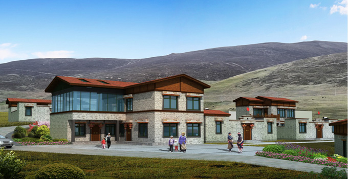 依托門卓村周邊優(yōu)美的自然環(huán)境,將建筑融入自然,改善村莊的綠化環(huán)境。在村莊中心位置新建綜合服務(wù)中心、停車場(chǎng)等服務(wù)設(shè)施,便于輻射整個(gè)聚居點(diǎn),方便村民。建筑采用南北朝向的院落布局方式,滿足通風(fēng)采光和住戶的使用要求。拓寬硬化現(xiàn)狀道路,改善村莊交通狀況,完善市政設(shè)施配套。