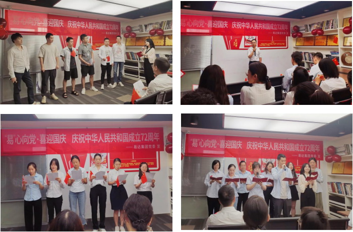 一曲激昂的《義勇軍進(jìn)行曲》拉開活動帷幕。1949年10月1日,毛澤東同志在開國大典上親自按下電鈕,新中國第一面五星紅旗冉冉升起。我們永遠(yuǎn)銘記10月1日,這是中華人民共和國成立的日子,也是無數(shù)先烈們用犧牲和奉獻(xiàn)換來的日子,是他們的不懈努力開創(chuàng)了中華民族的新紀(jì)元,也創(chuàng)造了屬于我們自己的美好幸福新生活。全體易達(dá)人共唱國歌,用歌聲表達(dá)對所有革命先烈的緬懷之情。